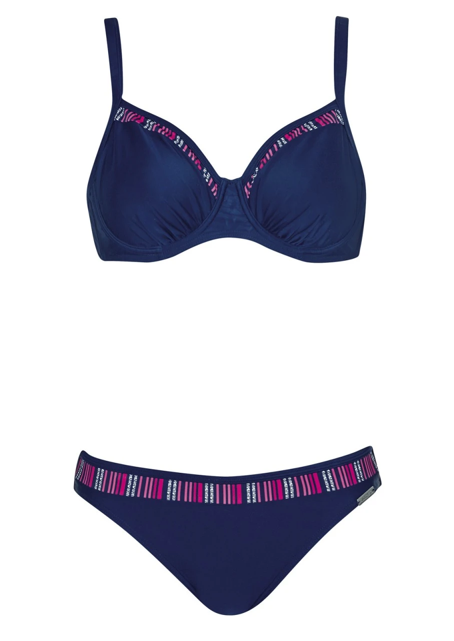 Klassischer Zweiteiler in zeitlos, schönem Design. Bikini mit Formbügel und Futterstütze. Die Träger sind verstellbar. Niedlicher, gestreifter Einsatz am Dekolleté sowie am Slip.