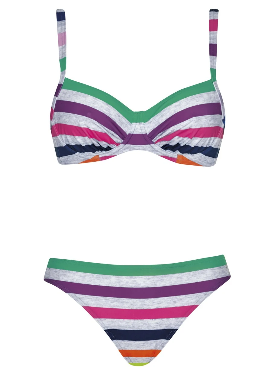Leuchtendes Streifendesign trifft Washed Cotton Optik. Ein frisches Design für wundervolle Bademode. Bikini mit Formbügel und Futterstütze. Die Träger sind verstellbar.