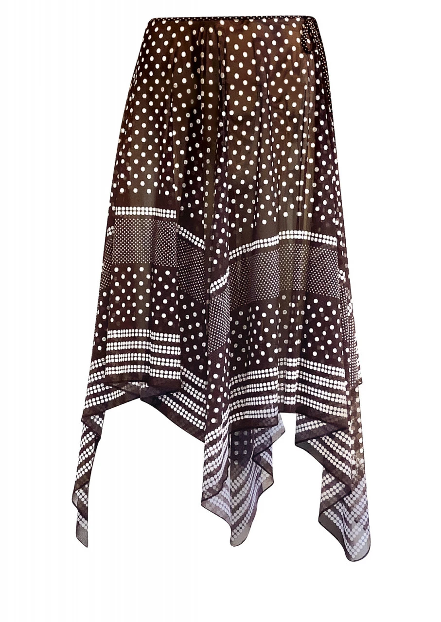 Sweet 50ies – Zauberhafte, weiße Pünktchen auf braunem Hintergrund. So schlicht und doch so hinreißend. Multistyle, tragbar als Kleid oder Rock – und immer ein besonderer Hingucker!