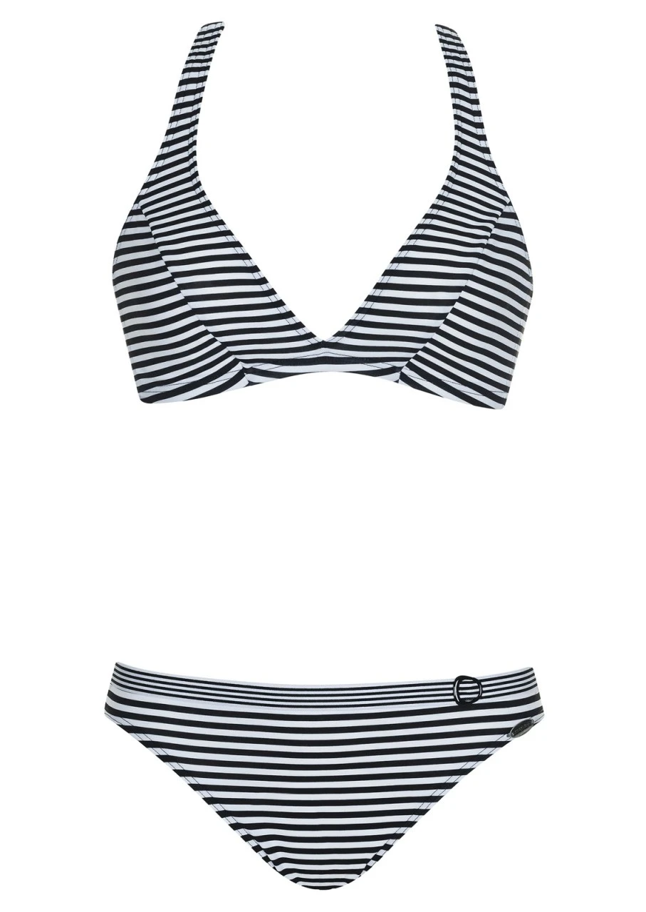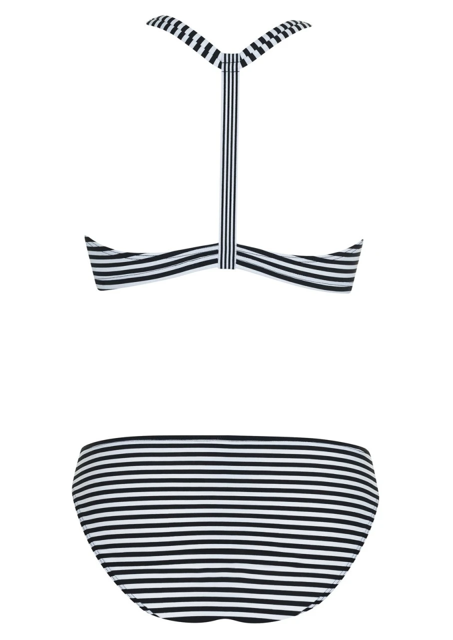 Ein Design, so einfach wie der Sommer! Schwarz und Weiß. Höschen mit niedlicher Gürteloptik. Bikini mit Stützfutter.